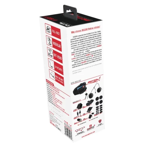 - "U-SAFE Crash Sensor" - måler sammentøt, ved et kraftig sammenstøt kontakter intercom'en en valgfri kontakt og oppgir din GPS lokasjon. Krever at du har tilkoblet telefon og GPS.